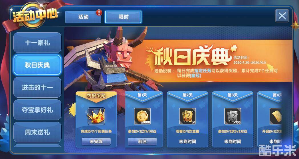 活动规则:每日可以完成一个任务拿日常奖励,共8日。累计完成7个任务可以获得大奖,包含夺宝券和皇冠!