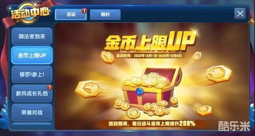 活动规则:活动期间每天通过战斗获得的金币上限提升200%