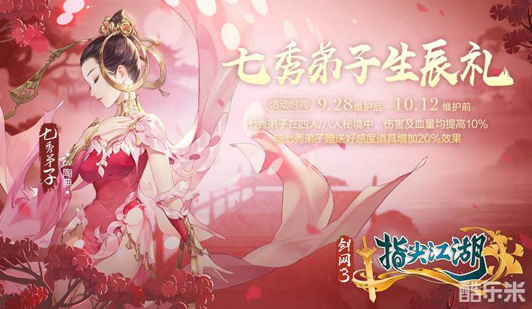 少侠们在三位侠客生辰期间,参与【七秀门派】卡池寻访十连抽,必出2张或2张以上【突破卡·紫】,其中紫色品质突破卡必为【七秀弟子】和【叶芷青】各1张。