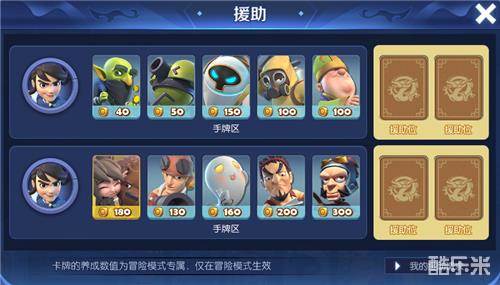 ①玩家可花费局内金币将1张牌给予队友,并可接受队友的卡牌援助,最多可接受2张