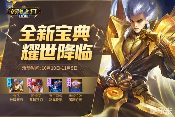 金色十月,秋风万里送新装!《英魂之刃口袋版》第二十一期无尽宝典闪耀上线,不仅包含金光闪闪的张飞限定皮肤,还有阿修罗全新紫色炫彩皮肤!更多超值好礼,尽在《英魂之刃口袋版》!