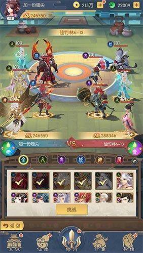 神人妖兽四大阵型、合计100多个英雄等你搭配;输出、控制、刺客、群攻、治愈,用策略组合战胜对手!灵兽、法宝、英魂、祈福,随时扭转战场!造就无限胜利流派,神仙对决!