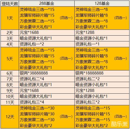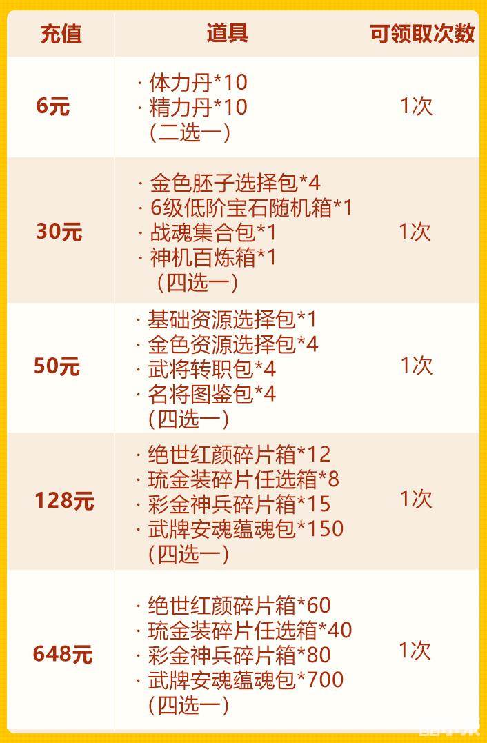 全新月基金——半月礼盒上线!每4天都可以领取到豪华琉金大礼,并且在最后一天还可领取翻倍奖励。
