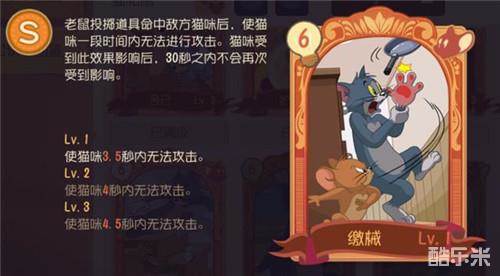 在搬运奶酪的过程中,小鼠们是否常常受到猫咪的骚扰?面对各种猫咪们变化多端的武器,是否常常感到气愤又无可奈何?那么全新S级鼠方知识卡“缴械”,将成为你的福音!装备此知识卡的老鼠投掷道具命中敌方猫咪后,猫咪将在一段时间内无法进行攻击,并在触发的30秒后可再次触发,从此也有还手之力!