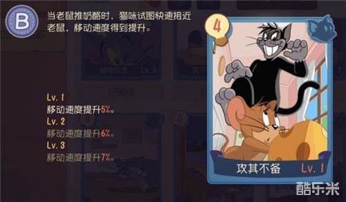 除了使用道具,选择合适的进击时机也是非常重要的,尤其是当老鼠在心神最得意、最放松的时候,从背后突然靠近!全新B级猫方知识卡“攻其不备”,当老鼠推奶酪时,装备它的猫咪突然快速接近老鼠,移动速度得到提升!胆小的老鼠们一定会被吓一大跳吧~