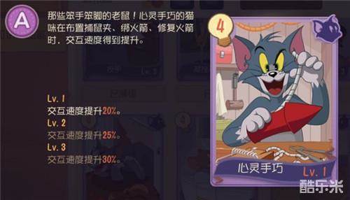 比起这些动不动就生气的小老鼠,猫咪们可要从容得多,与其正面对敌,不如利用道具给它们一个教训。全新A级猫方知识卡“心灵手巧”,让装备它的猫咪在布置捕鼠夹、绑火箭、修复火箭时,交互速度得到提升。给笨手笨脚的小老鼠们上一门难忘的课吧!
