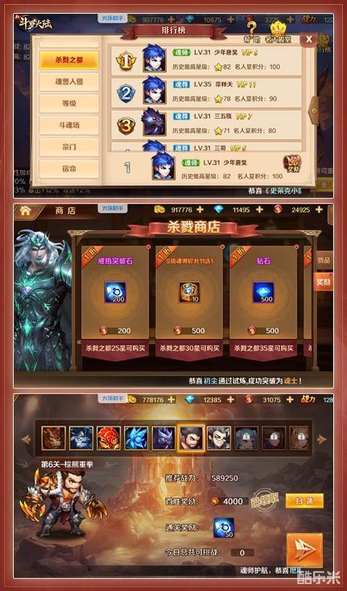 刷完体力,这里的4项排行,都能拿到前几名,魂兽入侵的商店可以拿26项奖励,有钻石,有3种项链进阶材料,有项链强化材料。1200体差不多能刷到3万左右的魂兽币,ps:魂兽商店可以消耗魂兽币。魂兽商店固定资源:s千道流碎片,s千纫雪碎片,A+天青牛蟒,A+泰坦巨猿,3项项链进阶材料,项链强化材料等等。养成一个良好的收集习惯,这将是变强的第一步。