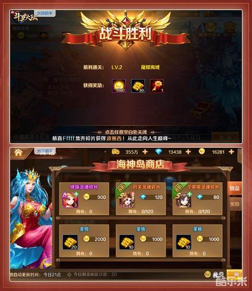 海神岛商店有我们紧缺的金砖,s蓉蓉碎片,s月关碎片,A+小白碎片,A+宁宗主。细节的收集商店,这是个好习惯。