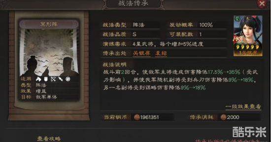 同SP袁绍的传承战法一样,减伤类战法,减伤效果受武力影响。对主将爆发型队伍有着极大的克制效果,不能和其他阵法出现在同一队伍中。