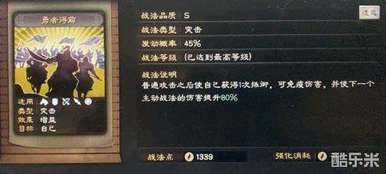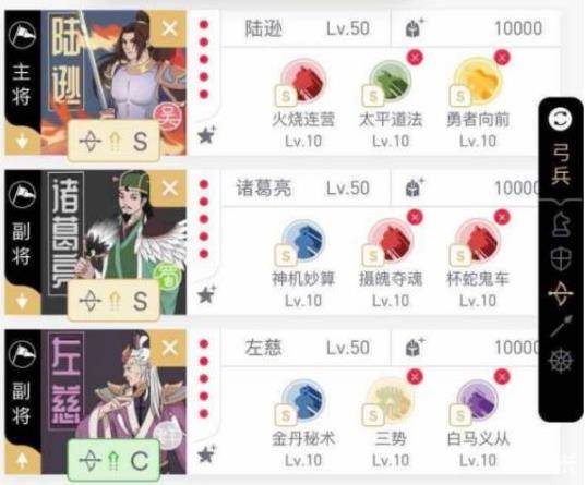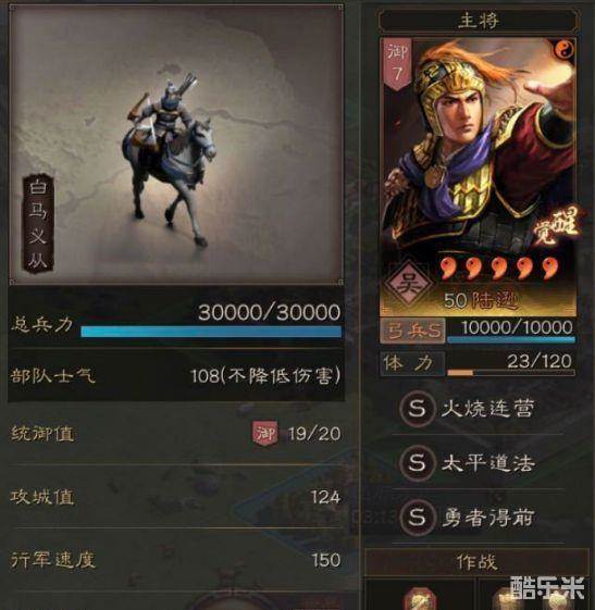 陆逊为边际收益率武将,换下士别三日其实不影响他的核心玩法,即高输出高发动率的主动战法,奇正相生由于陆逊的高额智力大概有30%概率连击,则勇者得前的发动率为1.3*0.45=0.585。