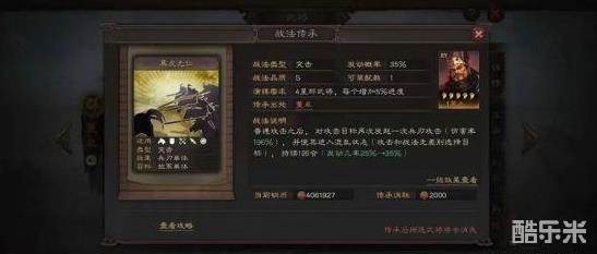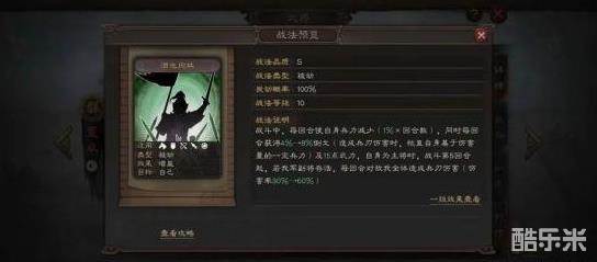 普通攻击之后,对攻击目标再次发起一次兵刃攻击(伤害率196%),并使其进入混乱状态(攻击和战法无差别选择目标),持续一回合。简单来说就是造成伤害和一回合的混乱。适合吕布,张辽和太史慈等。