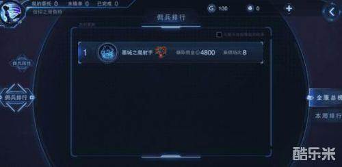 佣兵排行说的是你在作为佣兵身份时被雇佣获得的大量佣金,按照佣金数量做的一个排名。分全服总榜和本周排行。