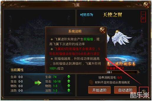 注意:当飞翼进阶失败会产生祝福值,提高下次进阶的成功率。