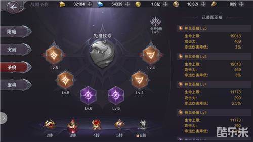 接下来,便是圣物突破。圣物突破需要花费创造晶石、黎明印记、时间沙漏等材料进行突破。突破成功后,勇士将能够增加圣痕属性(基础属性、技能特殊效果、高级属性)、圣物聚魂属性、基础属性(附魔+突破)等。具体增益内容,可在属性总览中进行查看。