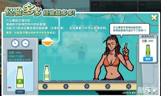 每日上午8点~凌晨1点,完成匹配3V3/排位赛/俱乐部联赛,在比赛结算窗口可以获得饮料。