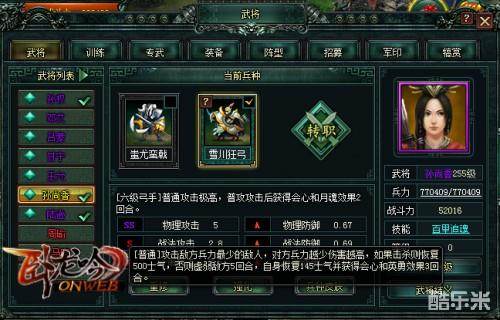 百里追魂是高级PK场上的点杀利器,蜀国的黄忠和魏国的曹节都拥有此技能,紫将时代专武的好坏尤为重要。孙尚香的专武对比其他两位百里追魂将就略显尴尬了,拥有强力点杀技能,专武却是辅助性质的,可能策划大大想让其更加符合女性将领的形象吧。