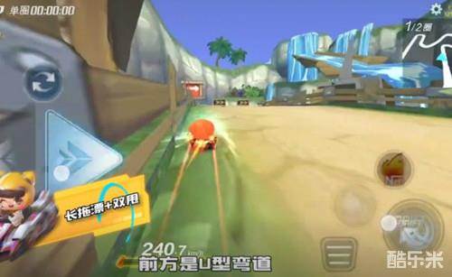 前方是U型弯道,车友们可以使用长拖漂+双甩操作,快速过弯。