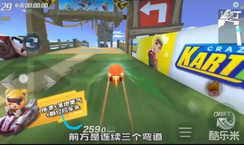 前方是连续三个弯道,第一个弯道这里有跳台需要提前漂移,落地时同向漂移。过弯后立刻反方向漂移,通过第二个弯道的近道,过弯后轻点左右方向键调整车头方向,第三个弯道这里使用拖漂配合断位拉车头技巧。