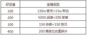 【活动内容】活动期间,每消费1000金币,即可获得100好运值,累计获得好运值可开启奖励宝箱。