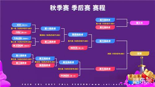 那么谁能代表东方赛区,去全球总决赛征服世界呢?本周末10月24日—10月25日每天17点,CRL东方赛区秋季赛季后赛首轮开战,5场比赛场场关键,残酷4进2淘汰悬念满满,我们不见不散!