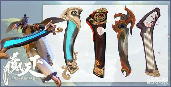 《赢天下》游戏中的武器分为斧、弓、拳套、双剑、琴五类。不同种类的武器,属性偏向及适用的技能特性均有差别。根据品质不同,武器初始属性及成长比率也各不相同,从白色到橙色,品质越高成长率越高。