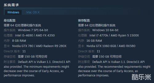 与前两代作品不同的是,《博德之门3》系列首次从2D画面转变到了全3D画面。画质上提升非常大,相应的作为一款PC游戏,画质的提升对硬件的要求也不低。从推荐的最低配置来看,玩家的硬件至少要达到4代i5、8G内存以及GTX780显卡的硬件性能。硬盘空间则需要至少150G的可用空间。