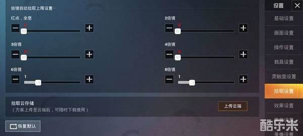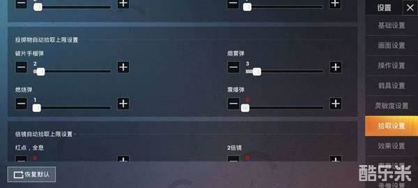 当然,如果你选择开启自动拾取瞄准镜功能也是可以的,不过,记得在倍镜自动拾取上限设置中将自己不常用的倍镜拾取上限调为0,等需要用到时手动拾取即可。