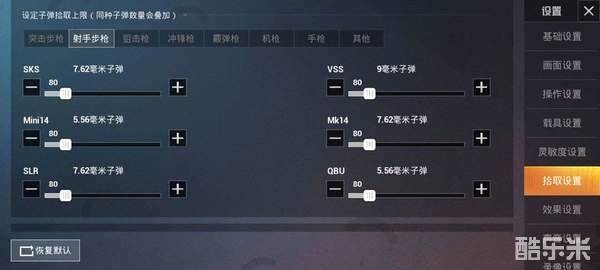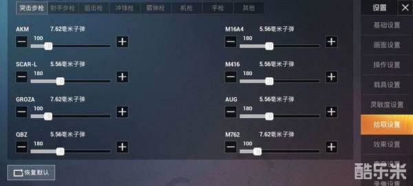 如果不是频繁近战的话,7.62mm子弹的系列步枪设置80-120发就足够了,而使用频率较高的5.56mm子弹系列步枪可以将拾取上限设置为180发。