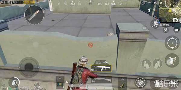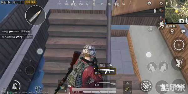 因为半开楼的楼梯很窄,没有办法很多人一起通过,我们就可以利用楼梯的视角盲区,打闪身枪来淘汰功楼的玩家,我们守楼梯就是一边守一边往楼上撤,打光一个弹夹的子弹换弹的时候就往楼上走,然后再通过上面的楼梯再卡一波,这样一边打一边撤到了楼顶满编队也被打的差不多了。