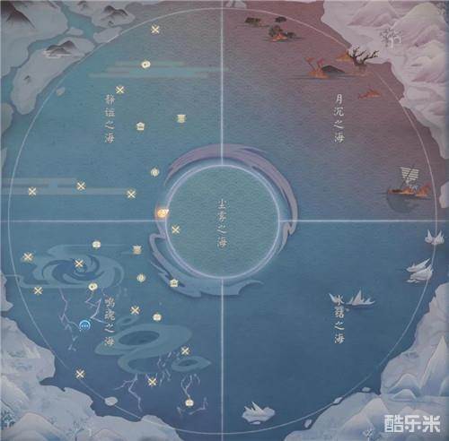 地图共分为5个海域,每个海域的各种事件正等待阴阳师们探索。完成当前海域的所有主线剧情任务,就可以获得该片海域的潮汐之力,在获得当前海域的潮汐之力后,可以任选相邻的海域进行解锁。