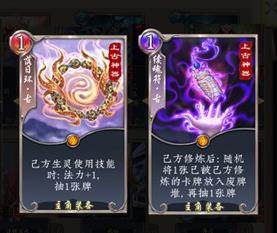 初始装备【续魂符】:己方修炼后,随机将1张已倍己方修炼的卡牌放入废牌堆,再抽1张牌。