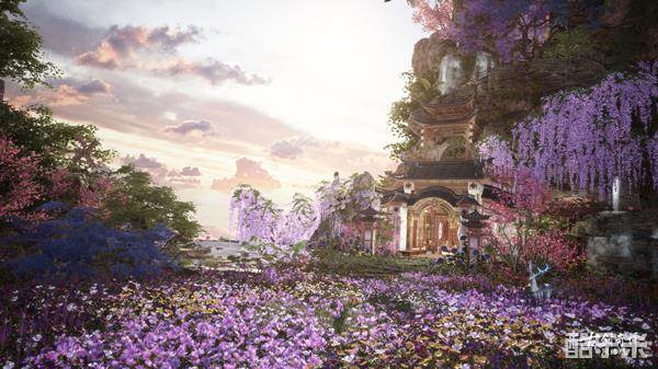 旁有桃林,夹岸数百步,芳草鲜美,落英缤纷。昔时渔人甚乐,欲穷其林,终寻桃源。在月华清辉的照耀下,“君醉晞”建造的仙府“仙月楼”被满院芳菲包围,静谧又美好,不禁让人流连其中,被这温柔的氛围所倾倒。