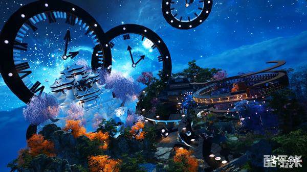 在建筑师的创作下,仙府是天马行空构思的具象,是人间烟火气息的温暖,或是遍地芳菲梦幻的桃源,亦可以是时光流转轮回的缩影:“盘龙先生”创造了一个穿梭在时空交错的仙境,昼夜的轮替定格了你的心中风景。巧妙地通过钟表圆盘来营造出时空之境的交织错乱感,往期作品的再现则更进一步加深了对“时”的诠释。