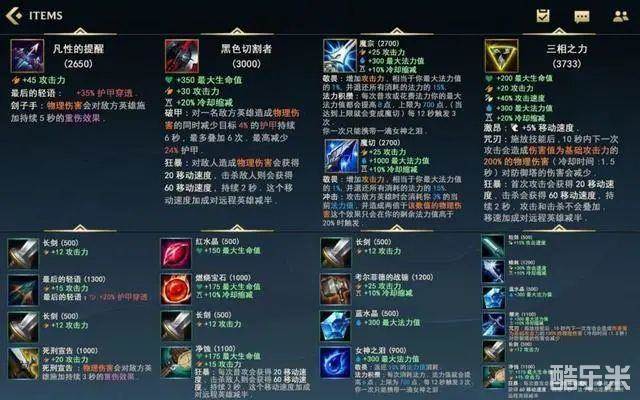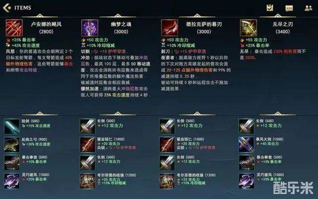 lol英雄联盟手游装备由于没有中文介绍,所以很多人用起来都是非常的麻烦的,所以这个时候有着详细的关于装备的介绍就非常的重要了,不然的话我们只能按照系统的选择进行出装,对于我们的战斗是非常的不利的,虽然装备的图标都是一样的,但是其中有很多的效果都是有所变化,下面就是具体的介绍了。