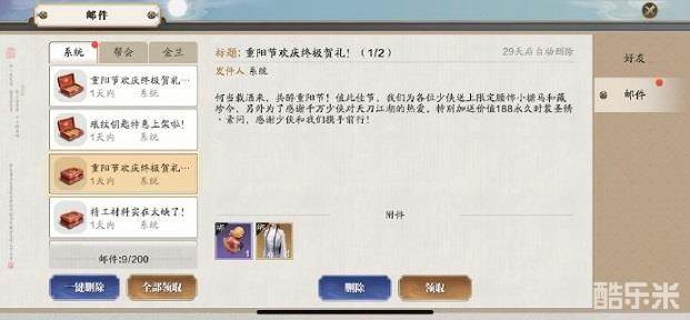 这些奖励都是通过邮件发放的,并不需要少侠们做什么任务,非常轻松有趣,不会给玩家们增加压力。