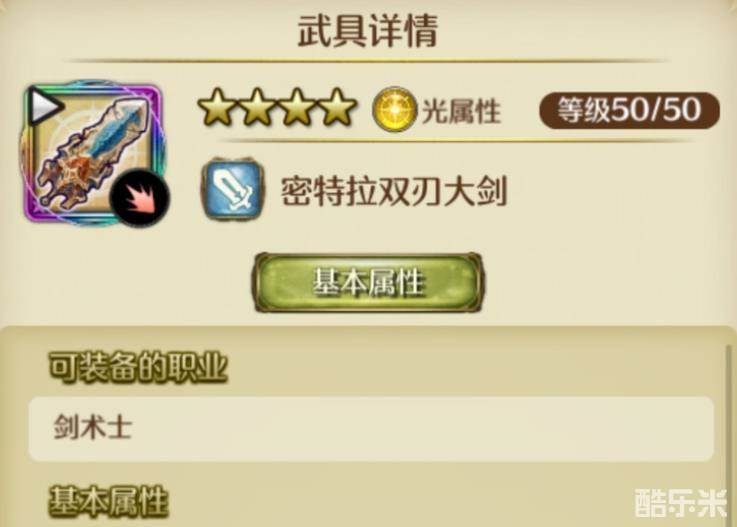 这是剑斗士目前单体输出最强的武器,所有武器的首选,自身是光属性,能很好的搭配一些强力的光属性的武器防具饰品,剑斗氪佬首选,并且技能十分强力,配合着自身增伤暴击的buff,龙人化的一击可以大力出奇迹,但是获得条件也很苛刻,扭蛋的爆率感人。