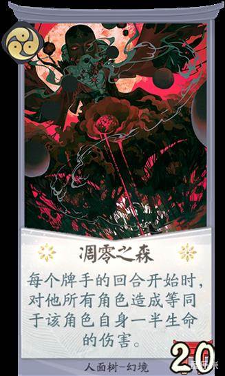 人面树的基础能力需要大家更加注意同时刻的结算顺序是回合方优先结算:如人面树的基础能力是敌方回合开始时,恢复全部生命,大天狗倒计时是我方回合开始时触发倒计时法术。所以到了我方回合,是先触发大天狗倒计时,再触发人面树的基础能力。