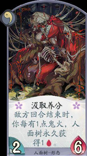 汲取养分在敌方回合结束时有多少点鬼火,人面树就永久获得多少点血量,所以非常适合搭配青行灯。