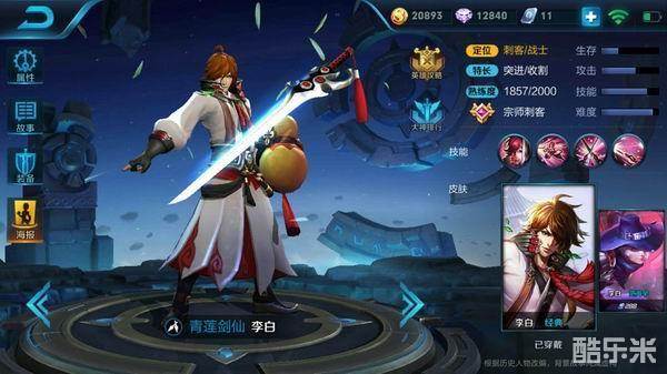 王者荣耀青莲剑仙李白,神秘莫测杀敌