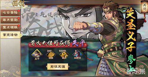 不仅有硬核的策略战局,为恭迎各位主公,《策魂三国》也将在测试期间开启多重福利活动。参与七日签到领福利活动,完成登陆签到任务,即可获得女武将大乔小乔姐妹花,此外更有武将招募令、高阶屯卫、战国策等高价值豪礼相送。开测后首次充值即送关圣义子?关平,强势助力各位玩家的冲关之战。此外,参与限时冲级活动,更有橙色兵种、珍稀魂玉、武将招募令免费领。完成七日任务,还将获稀有蚩尤秘籍、高阶屯卫、玉币*1050、武将招募令等丰富大礼。