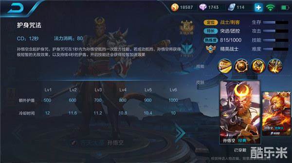 一技能-护身咒法:一秒内格挡一次敌方技能,抵挡成功后孙悟空获得无敌效果并拥有4秒的护盾,开启技能获得加速。一技能用的好,让孙悟空对敌人拥有很大的威胁,来去自如,千里取敌首级从容逃脱!开启后的加速能够让孙悟空很好的切入战场及逃生,利用得好,更是可以吸收伤害为队友创造更多机会!