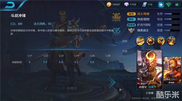 二技能-斗战冲锋:孙悟空主要的位移技能。配合被动能两段突进快速切入。如果从敌人身边跃过能够借力跳出很长的距离进行追击与逃生。