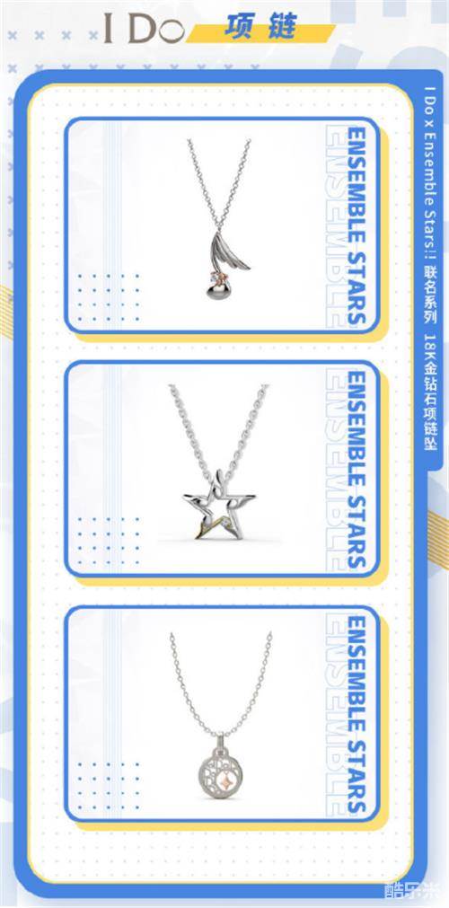 《偶像梦幻祭2》与 IDo官方联动,以小偶像们的特点为灵感,推出了精美的联名珠宝!本次联动共推出3条钻石项链坠,材质为18k金+钻石。璀璨的钻石诠释了偶像的闪耀!