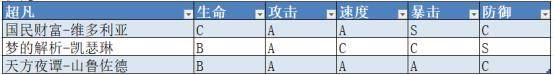 法芙娜二技能的伤害加成还不错,有168%杀伤范围也很大,但自身的攻击属性只有A级,所以在杀伤力方面相比T1的几个大佬还是略有差距的。