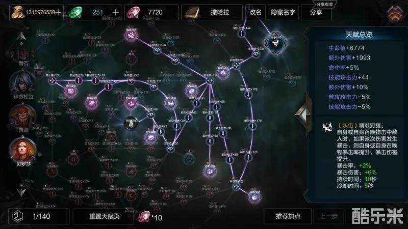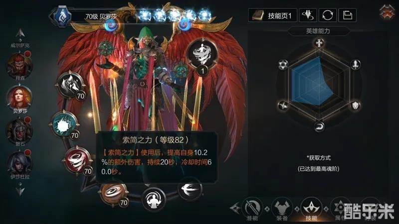 左右两边天赋从上往下依次这样选,因为贝罗莎是火属性的魔法英雄,走的技能输出,所以只要跟召唤物相关的都可以剔除。