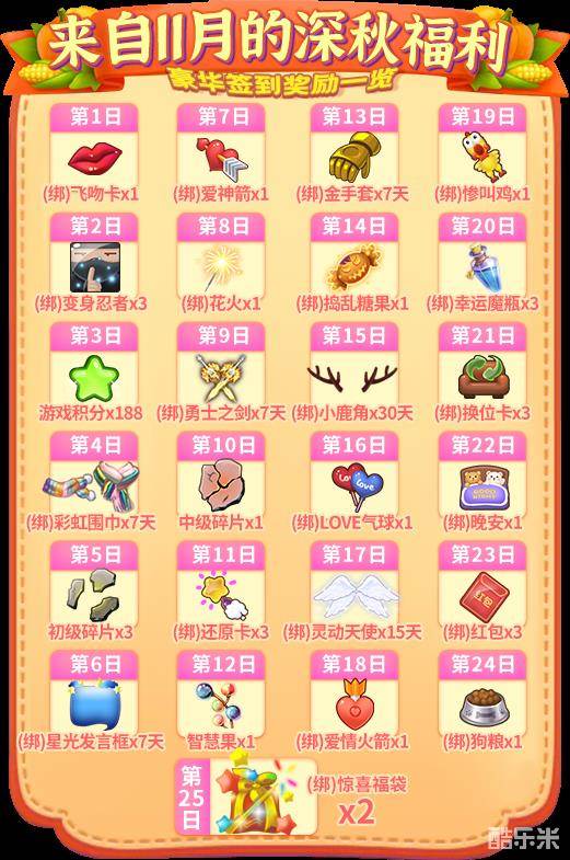 3. 最多可累积25次“豪华签到”奖励领取次数,奖励仅在当月有效,次月清零。