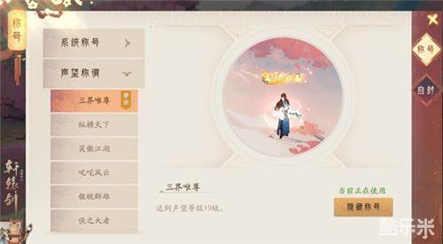 当解锁到特定声望等级,还会有对应特效称号奖励,少侠可在称号界面“声望称谓”板块下查看或装备获得的称号。昔日“无名之辈”终成“三界唯尊”,少侠不断前行的江湖之旅,自当万众瞩目。