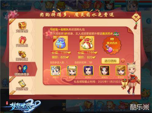 与好友一起组队可在在奖励界面对应的活动上进行团购,也可以享受更多的折扣哦!