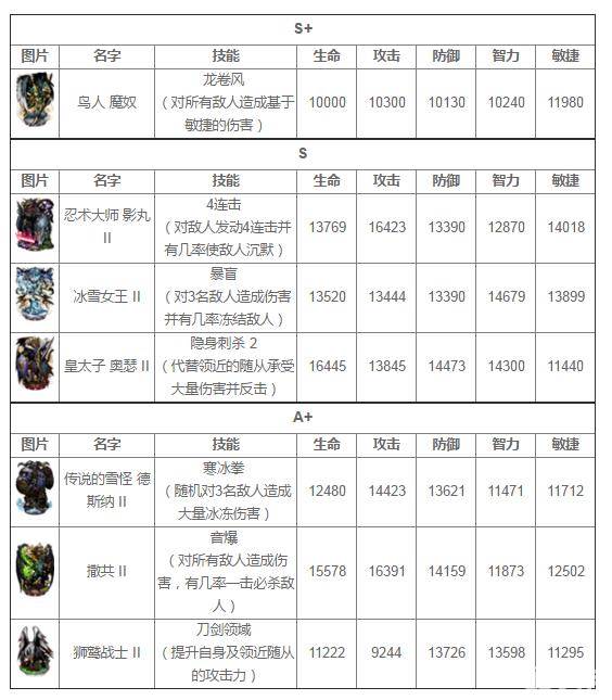 (没有在列表里的并不是说不值得练,只是可能国服还没有出或者是不适合爬塔)