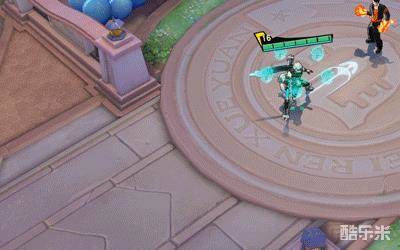 技能2【翻山越岭】悟空朝前扔出金箍棒,接着快速冲刺,接住在半空中旋转如飞轮的金箍棒,回身帅气挥击,留下华丽的半弧形青色幻光。